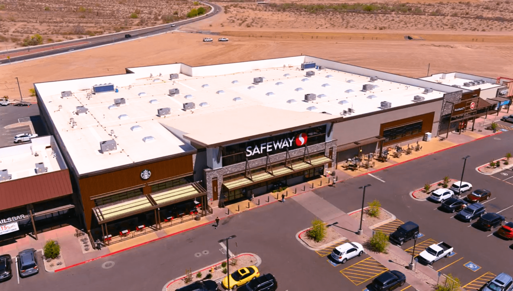 Image Building Systems successfully completed the construction of a 62,200-square-foot Safeway supermarket located in Peoria, Arizona. This modern retail facility includes a full-service pharmacy, an expanded Starbucks café with a comfortable seating area for guests, and a designer floral department that enhances the in-store shopping experience. The building is a hybrid pre-engineered metal building with tube columns, steel embeds, ledger angle, skylights, a structural equipment screen and 22-gauge 1.5” B-deck. Additionally, the project features four architectural canopies, each finished with clean, streamlined soffit panels that add both visual appeal and functional coverage to key entry areas.